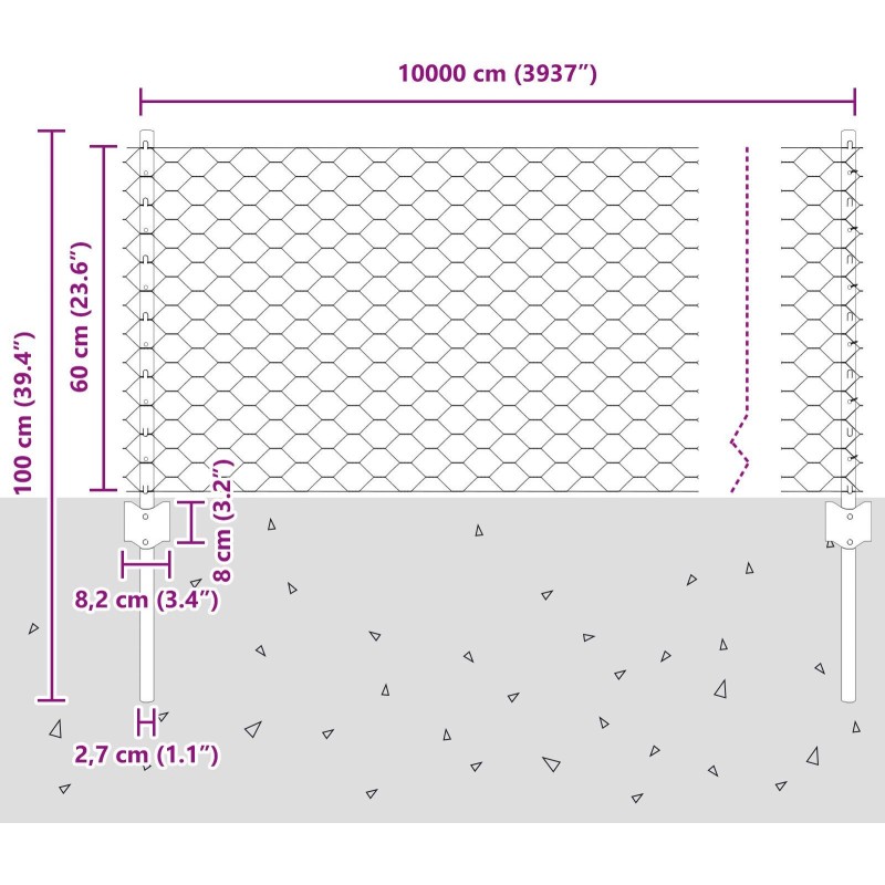 vidaXL Słupki ogrodzeniowe 11 szt. U-Channel 60 cm stal ocynkowana, vidaXL Ogrodzenie sześciokątne 0.6x100 m stal ocynkowana