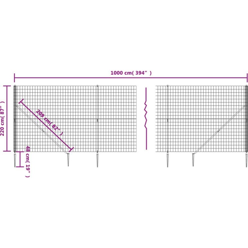 vidaXL Ogrodzenie z siatki, z kotwami, zielone, 2,2x10 m
