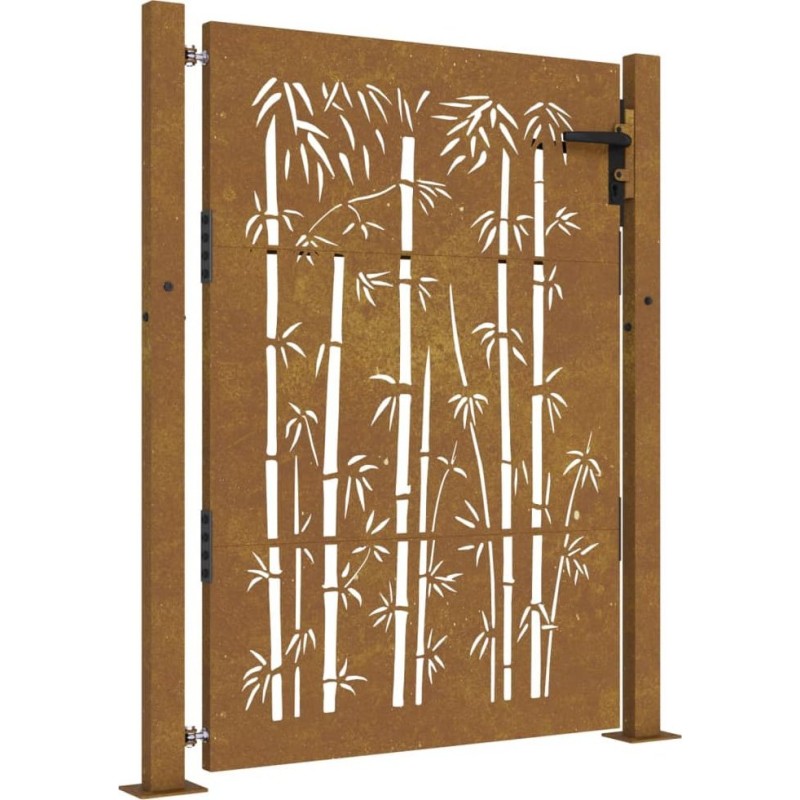 vidaXL vidaXL Furtka ogrodowa, 105x130 cm, stal kortenowska, motyw bambusa