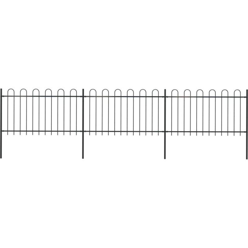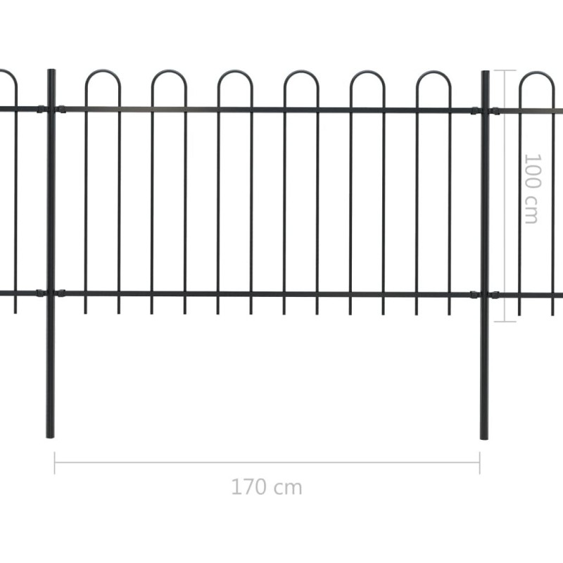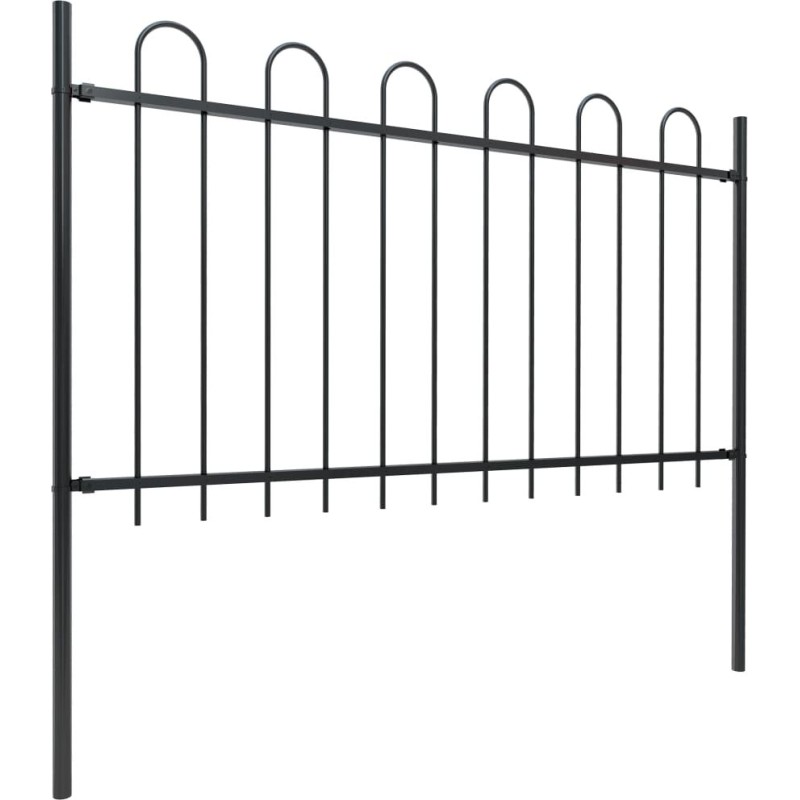 vidaXL Ogrodzenie z zaokrąglonymi końcami, stalowe, 5,1 x 1 m, czarne