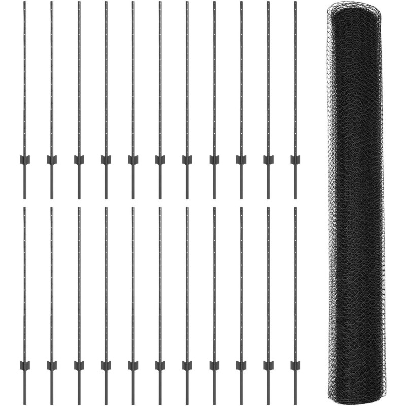słupki ogrodzeniowe vidaXL 22 szt. U-Channel szare 120 cm stalowe, Płot sześciokątny vidaXL szary 1,2x50 m stalowy