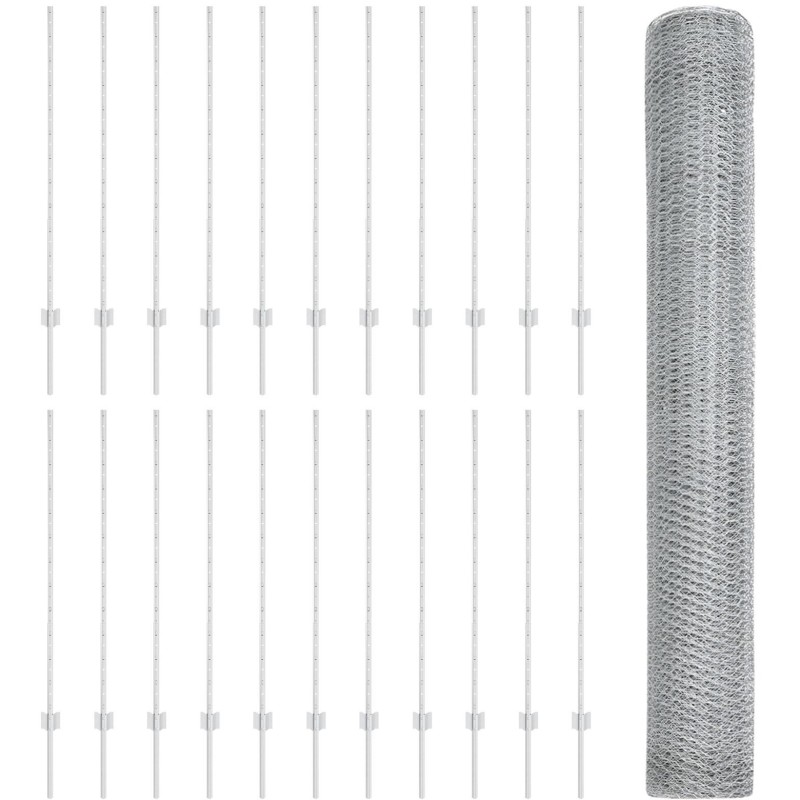 vidaXL Słupki ogrodzeniowe 22 szt. U-Channel 120 cm stal ocynkowana, vidaXL Ogrodzenie Sześciokątne 1.2x50 m stal ocynkowana