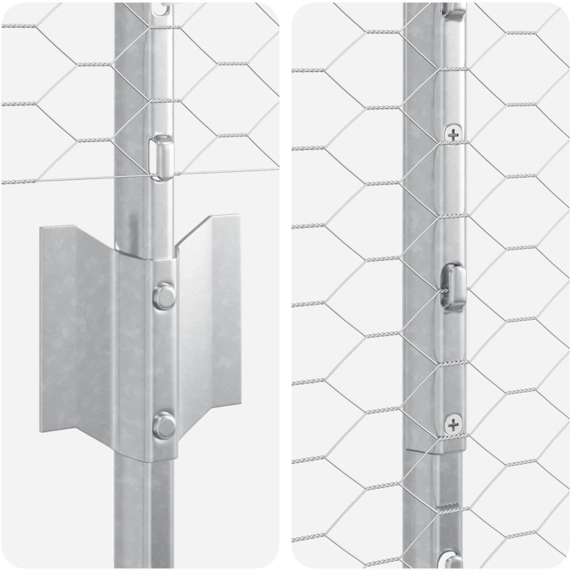 Ten szary zestaw ogrodzenia sześciokątnego ze stali ocynkowanej to nowoczesny akcent w Twojej przestrzeni na świeżym powietrzu. Jego mocny i praktyczny design idealnie nadaje się do każdego ogrodu, tworząc niezawodną granicę, by chronić zwierzęta i dzieci, a jednocześnie poprawić wygląd Twojej posesji.
