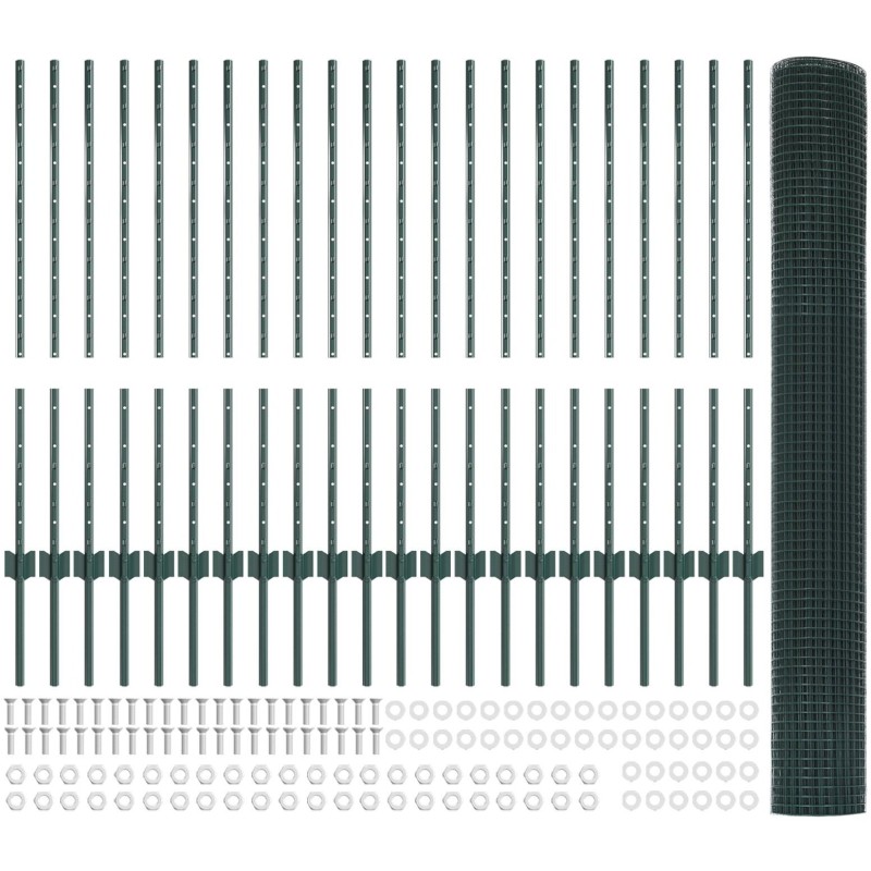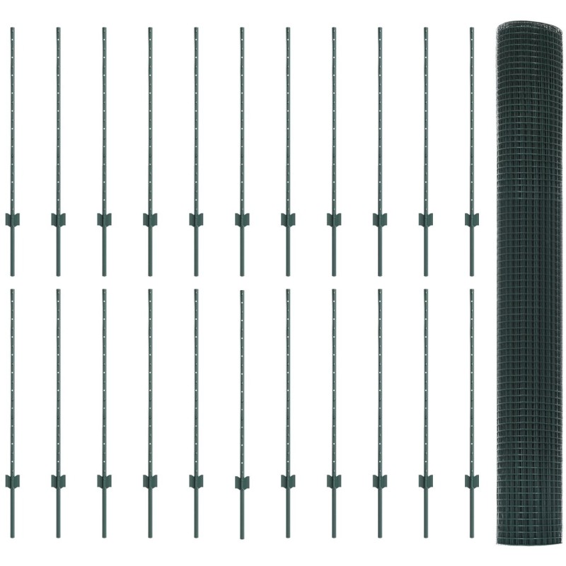 vidaXL Ogrodzenie z drutu spawanego z 22 słupkami U Zielonym 1x50 m Stal