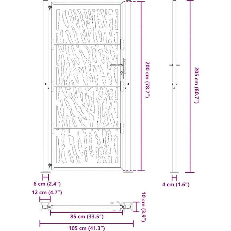 vidaXL Brama ogrodowa 105x205 cm Stal nierdzewna Wzór śladu