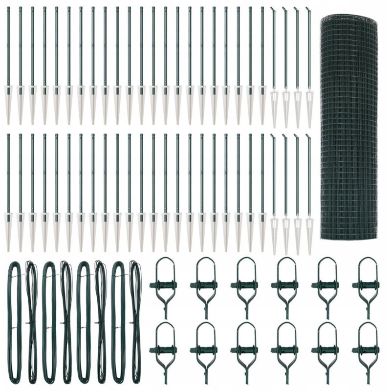 vidaXL Ogrodzenie z drutu spawanego z 13 słupkami do kotwienia Zielone 0.5x100 m Stal