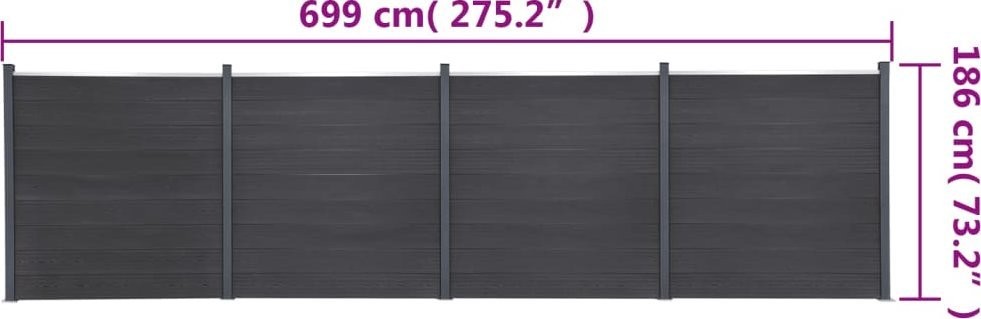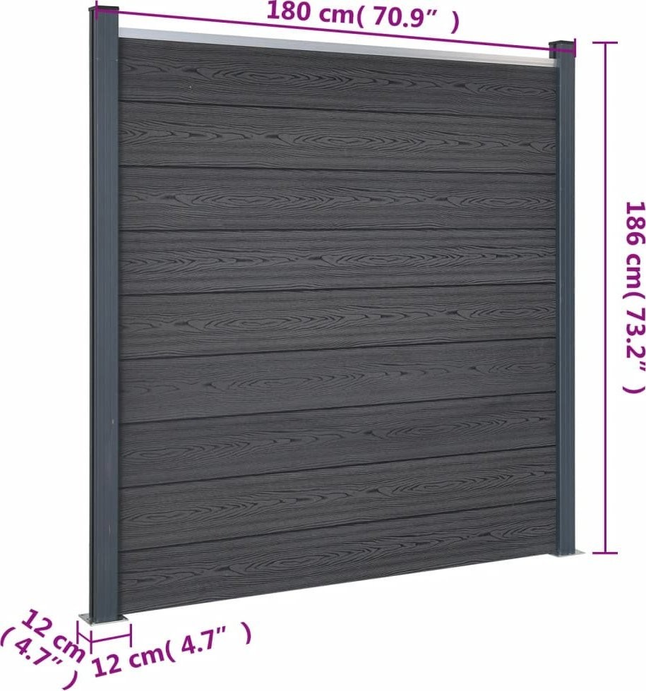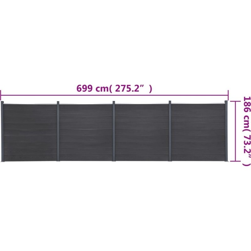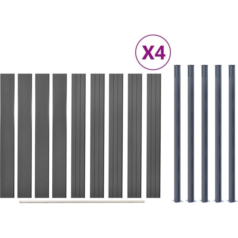 Zestaw paneli ogrodzeniowych, szary, 699x186 cm, WPC