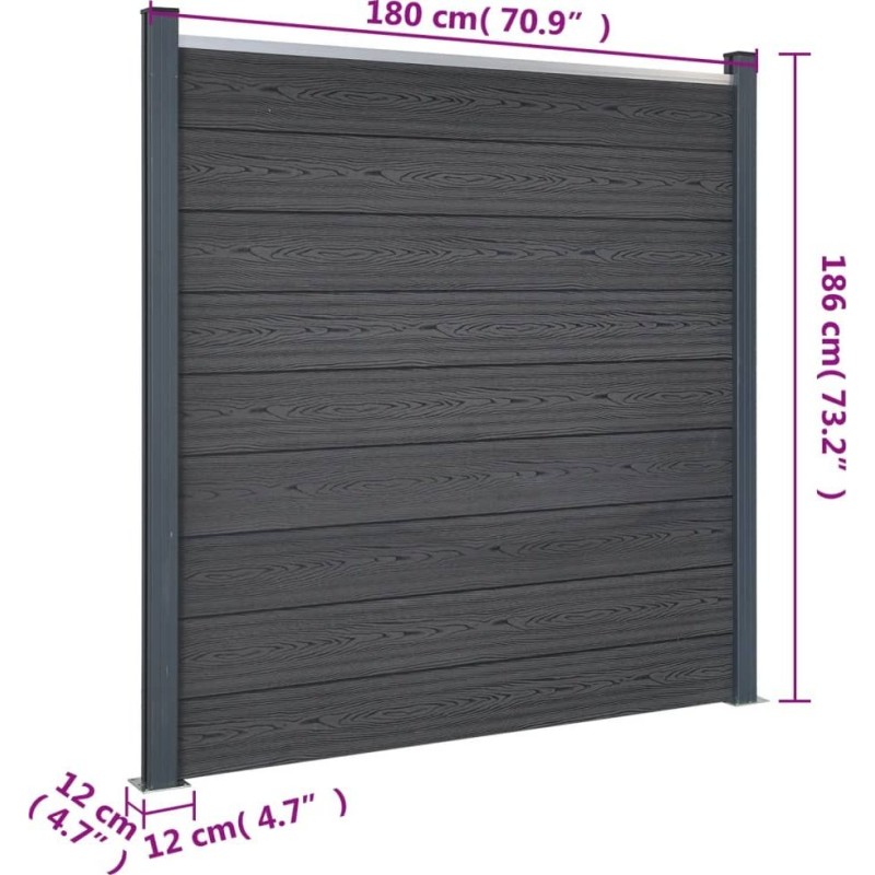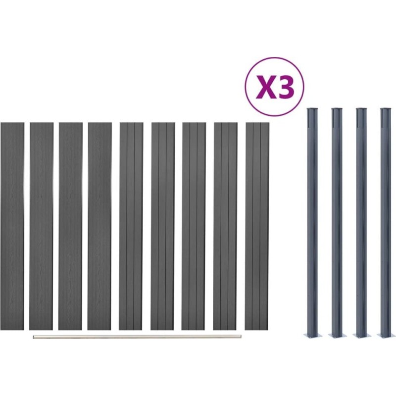 Zestaw paneli ogrodzeniowych, szary, 526x186 cm, WPC