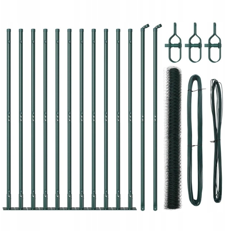 vidaXL Ogrodzenie sześciokątne Zielone 1.4x25 m Stal, Stalowe słupki ogrodzeniowe vidaXL z podstawami 13 szt. 32mm 78.5cm Stal o
