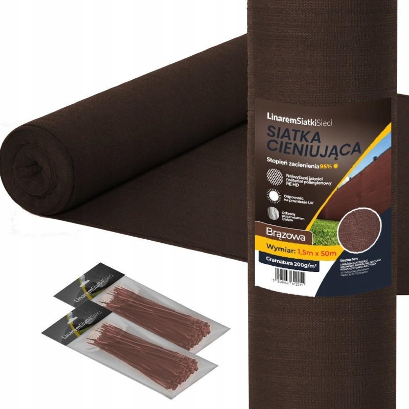 SIATKA CIENIUJĄCA 95% MATA 1,5x50m MASKUJĄCA NA OGRODZENIE PŁOT 200g +UV BRĄZOWA