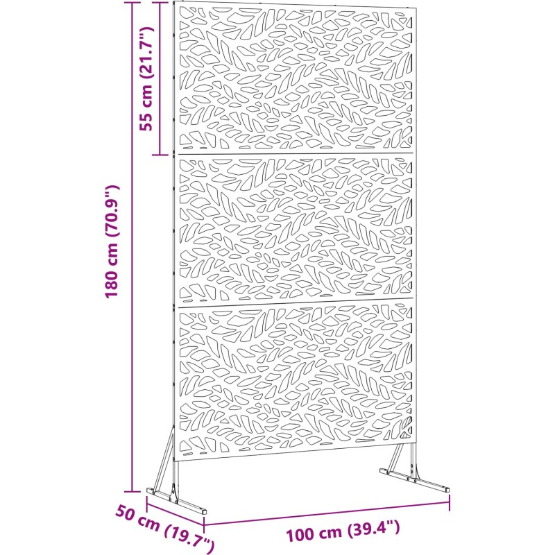 Ten metalowy panel na zewnątrz to sprytny sposób na udekorowanie przestrzeni zewnętrznej i wytyczenie wyraźnych granic. Z nowoczesnym wzornictwem, gładkimi powierzchniami i artystycznym wzorem liści, świetnie sprawdzi się w dodawaniu stylu do ogrodów i miejsc na dworze.
