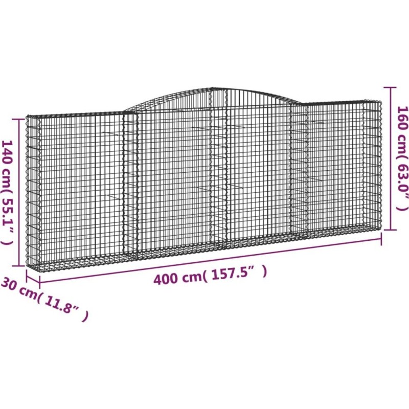 vidaXL vidaXL Łukowaty kosz gabionowy 400x30x140/160 cm, galwanizowane żelazo