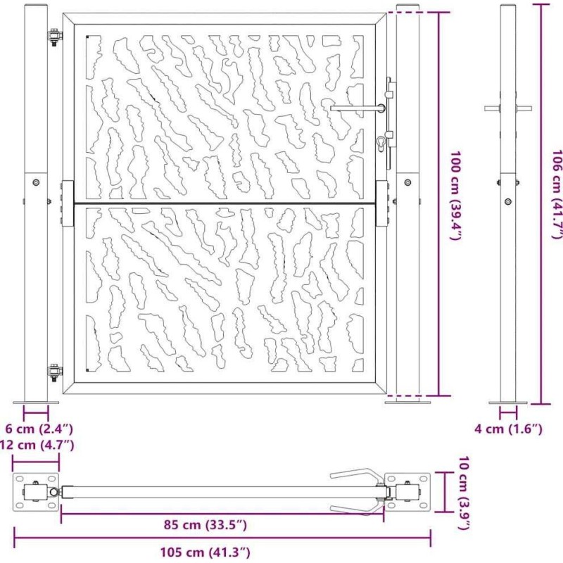 vidaXL Brama ogrodowa 105x105 cm Stal odporna na warunki atmosferyczne Design z wzorami