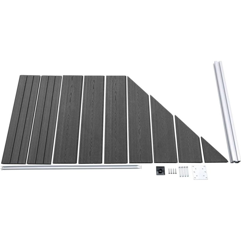- Materiał: WPC (kompozyt drewna i plastiku), aluminium, stal