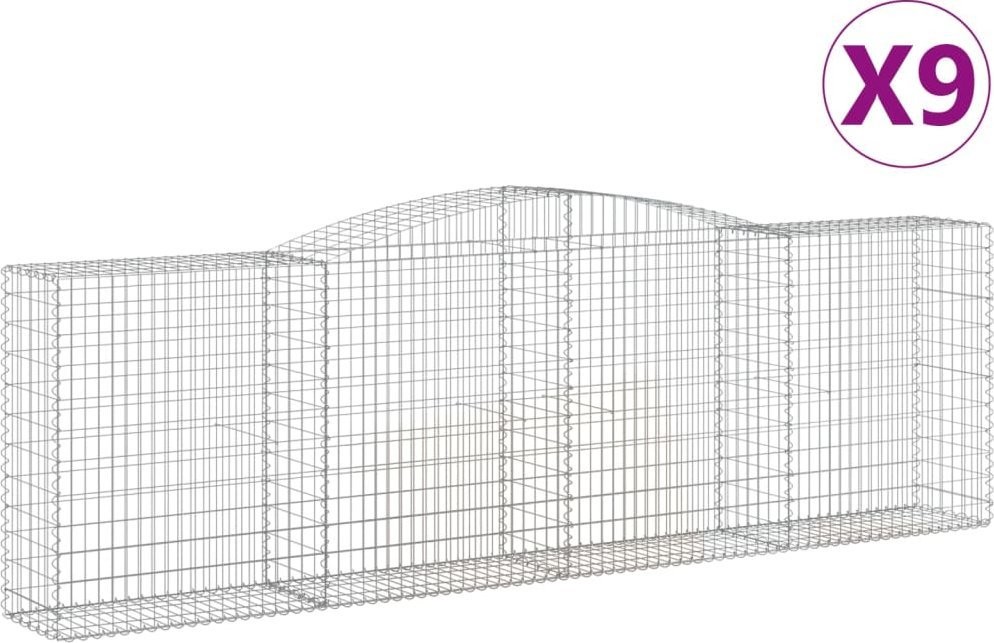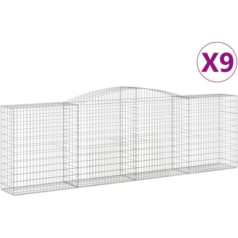 vidaXL Kosze gabionowe, 9 szt, 400x50x120/140 cm, galwanizowane żelazo