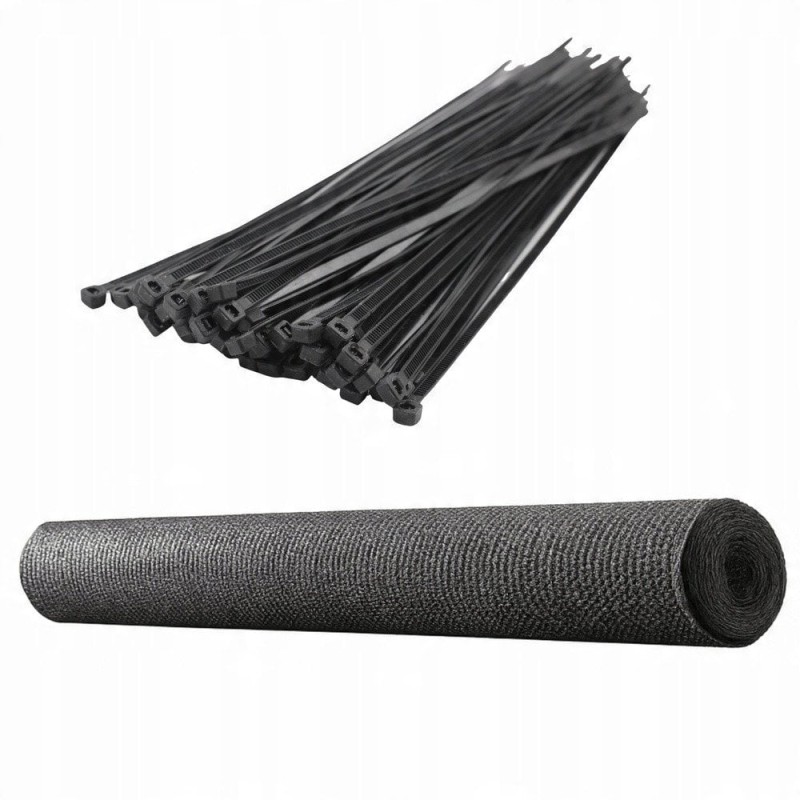 - Zawartość zestawu: siatka cieniująca 1,5 x 25 m, 60 opasek zaciskowych