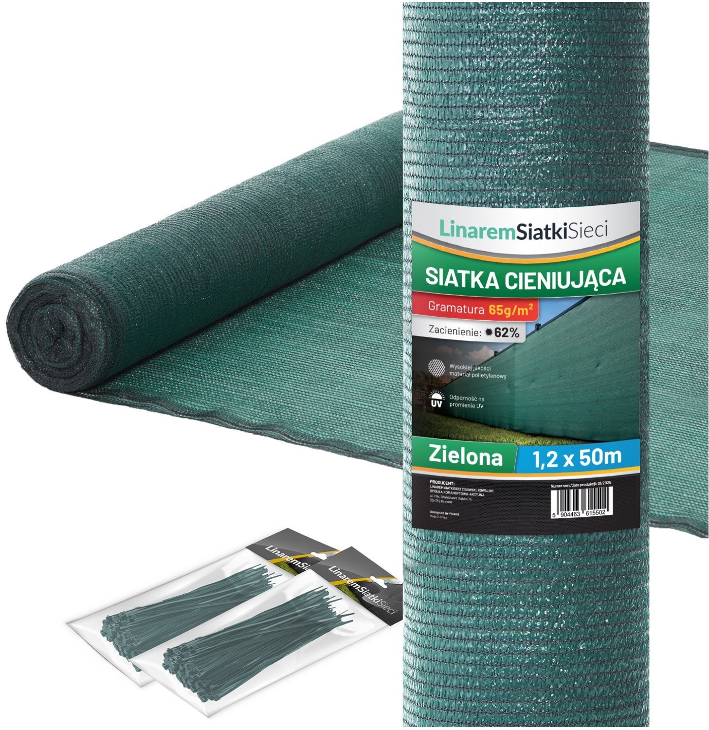 SIATKA CIENIUJĄCA 62% MASKUJĄCA 1,2x50m OSŁONA NA PŁOT OGRODZENIE ZIELONA +UV