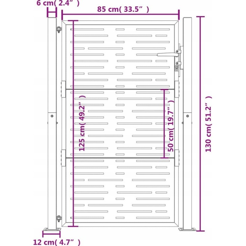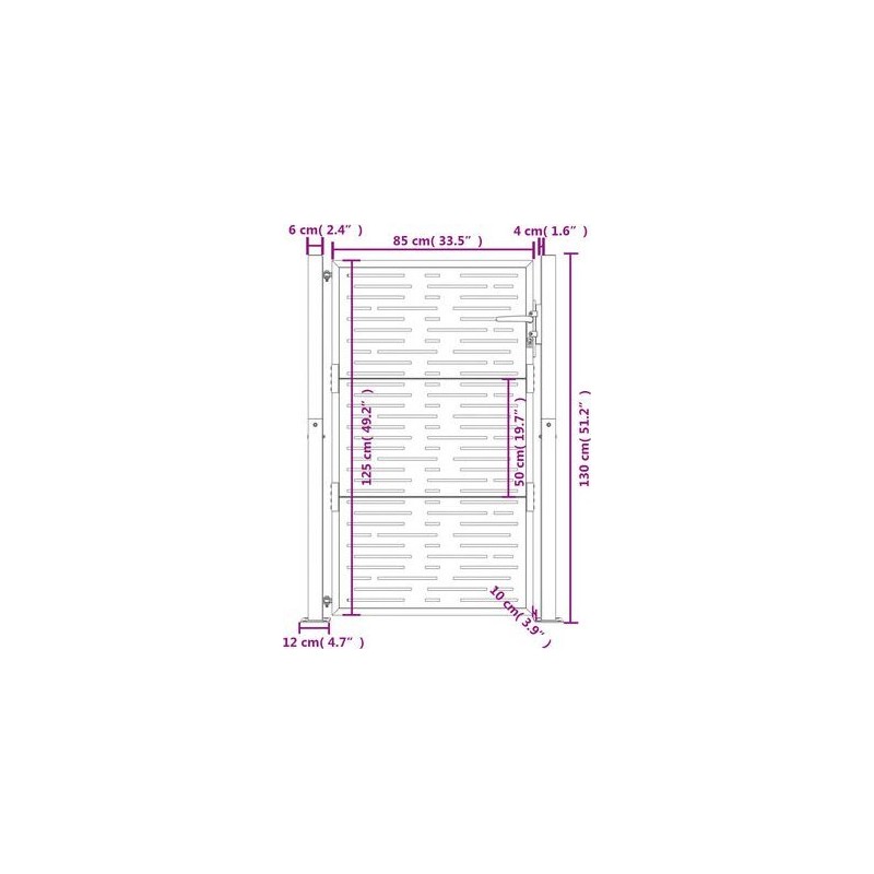 - Wymiary panelu furtki: 85 x 125 cm (szer. x wys.)