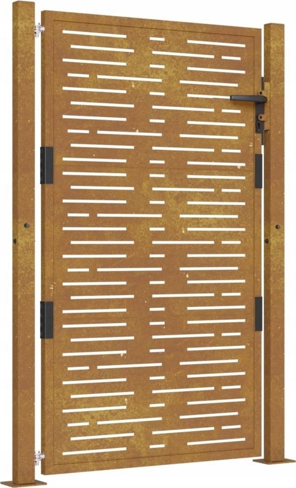 - Wytrzymała konstrukcja: furtka jest wykonana z trwałej stali kortenowskiej, która jest odporna na korozję. Jej charakterystyczny brązowy kolor z pewnością przyciągnie wzrok.