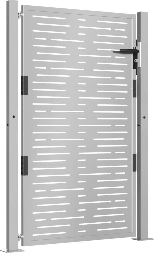- Ciekawy wzór: furtkę zdobi piękny wzór wycinany laserowo, dodając niepowtarzalnego uroku Twojej przestrzeni przydomowej.