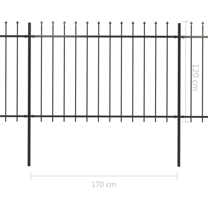 vidaXL Ogrodzenie z prętów z grotami, stalowe, 5,1 x 1,2 m, czarne