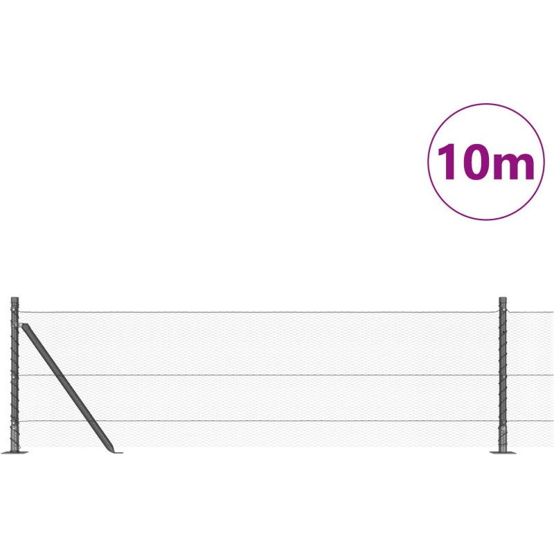 vidaXL Ogrodzenie heksagonalne Szare 0.4x10 m Stal, vidaXL Słupy ogrodzeniowe z podstawami 7 szt. 32mm 50cm Stal ocynkowana