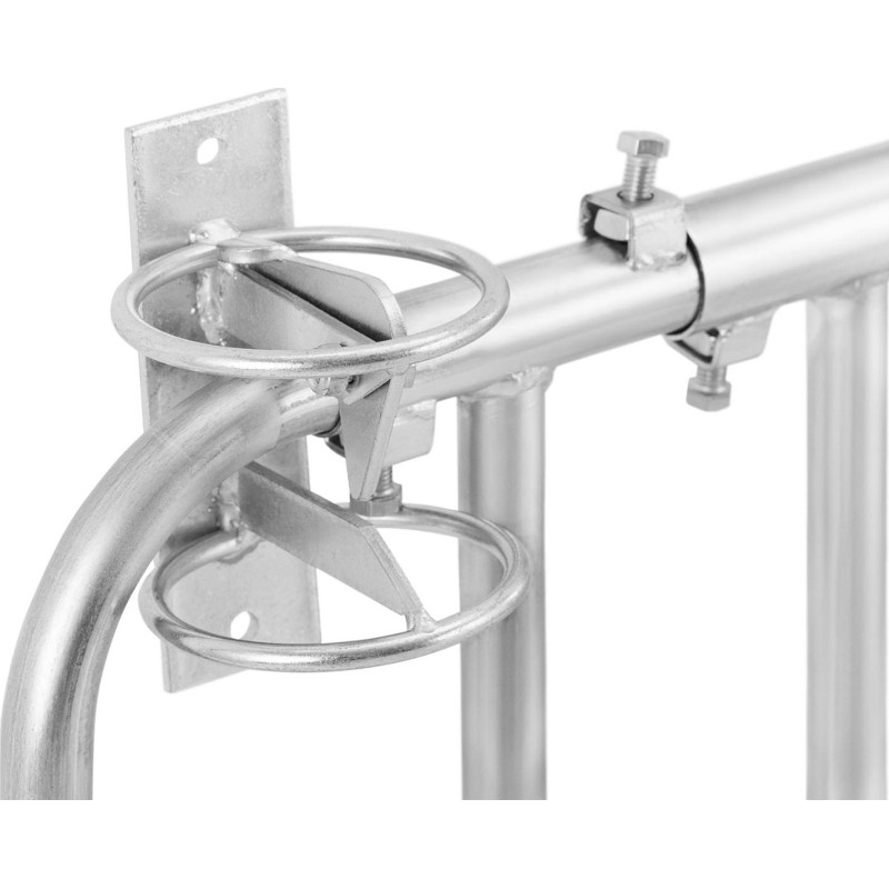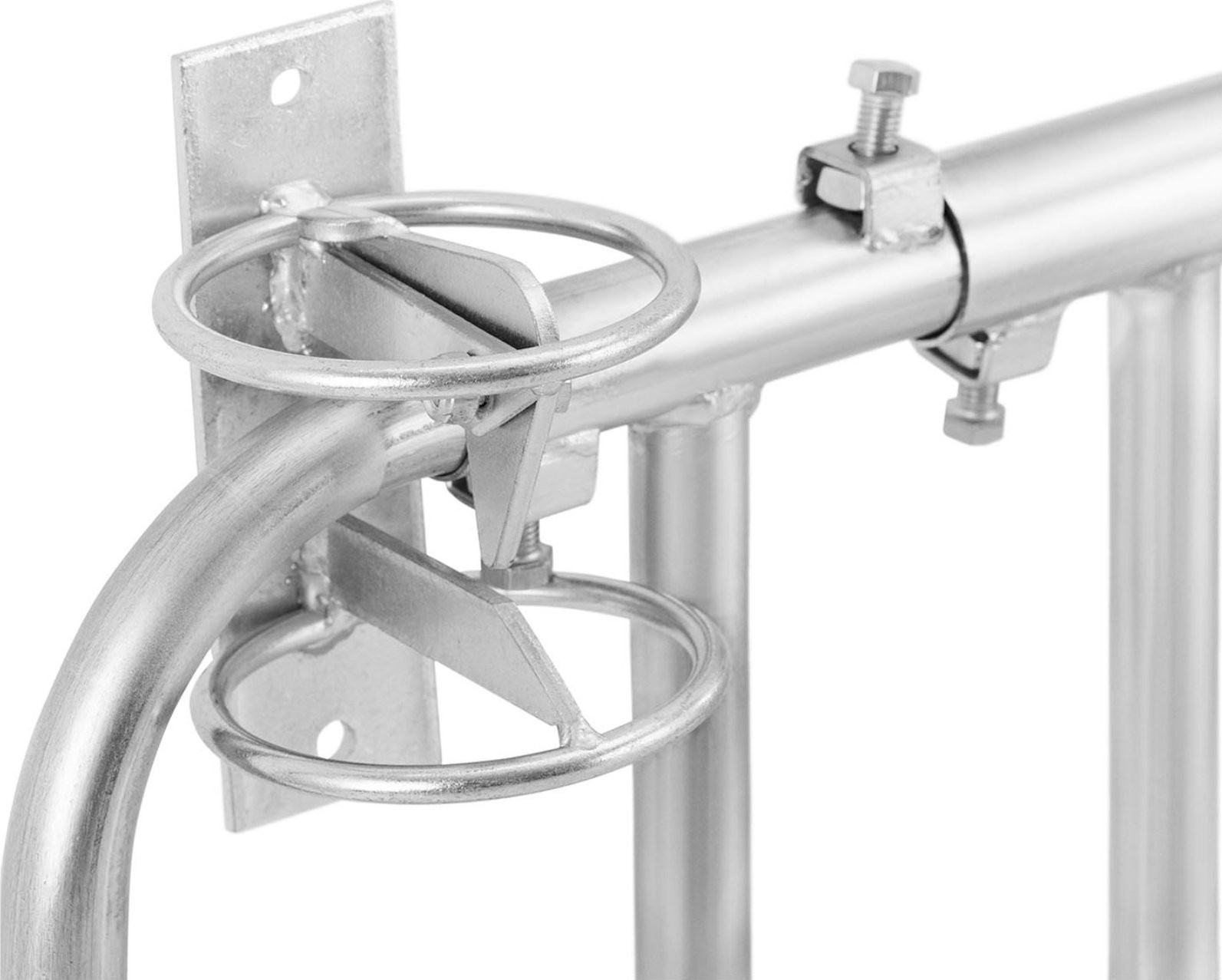 Brama pastwiskowa firmy Wiesenfield skutecznie zabezpieczy pastwisko, aby zwierzęta mogły się po nim poruszać bez przeszkód. Metalową bramę można łatwo ustawić między dwoma słupkami ogrodzeniowymi i bezpiecznie przymocować lub zdjąć w razie potrzeby. W zestawie znajdują się dwa zawiasy, zamek zatrzaskowy i śruby. Aby przymocować bramę do słupka, potrzebne są odpowiednie wkręty, których brak w zestawie. Brama została wykonana z solidnej, stalowej konstrukcji dzięki czemu nawet ciężkie zwierzęta, takie jak krowy czy konie, nie wygną jej ani nie otworzą. Stal ocynkowana jest wyjątkowo odporna na wszelkie warunki atmosferyczne i jest zabezpieczona przed korozją. Wysokość 91 cm stanowi przeszkodę nie do pokonania nawet dla dużych zwierząt. Szerokość bramy ogrodzeniowej regulowana jest w zakresie 1500-4000 mm, dzięki czemu elastycznie można dopasować ją do ogrodzenia. Po jej zamontowaniu żadne zwierzę nie opuści terenu bez pozwolenia.