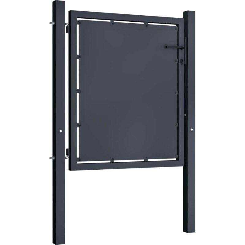 Brama wykonana jest ze stali, co zapewnia wyjątkową wytrzymałość i stabilność. Dzięki zwartej konstrukcji oferuje ona wyjątkową solidność. Zapewnia także duży stopień bezpieczeństwa i większą prywatność, tworząc jednocześnie fantastyczne wejście na Twoją posesję. W zestawie znajdują się również dwa solidne słupki z mocnymi zawiasami, które gwarantują łatwość montażu.