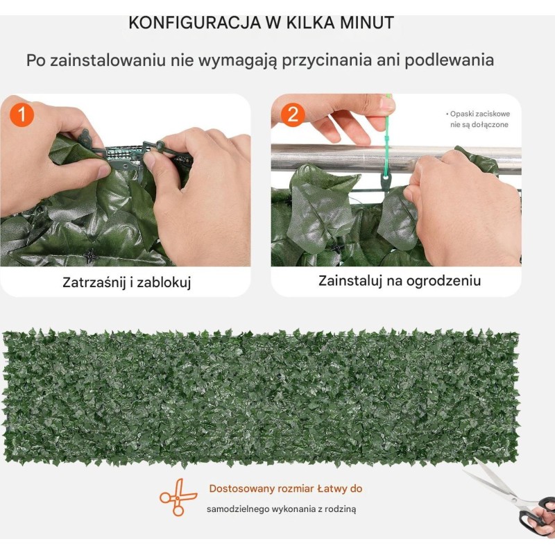 Sztuczny Żywopłot 990 x 4010 mm – Mata Osłonowa z Liśćmi Bluszczu