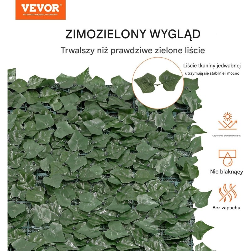 Wysokiej jakości liście, wykonane z jedwabnej tkaniny, doskonale imitują naturalny bluszcz, co sprawia, że sztuczny żywopłot wygląda niezwykle autentycznie. Dzięki temu przestrzeń staje się bardziej przytulna i estetyczna.