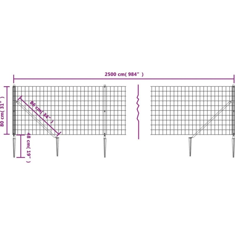 vidaXL Ogrodzenie z siatki, z kotwami, zielone, 0,8x25 m