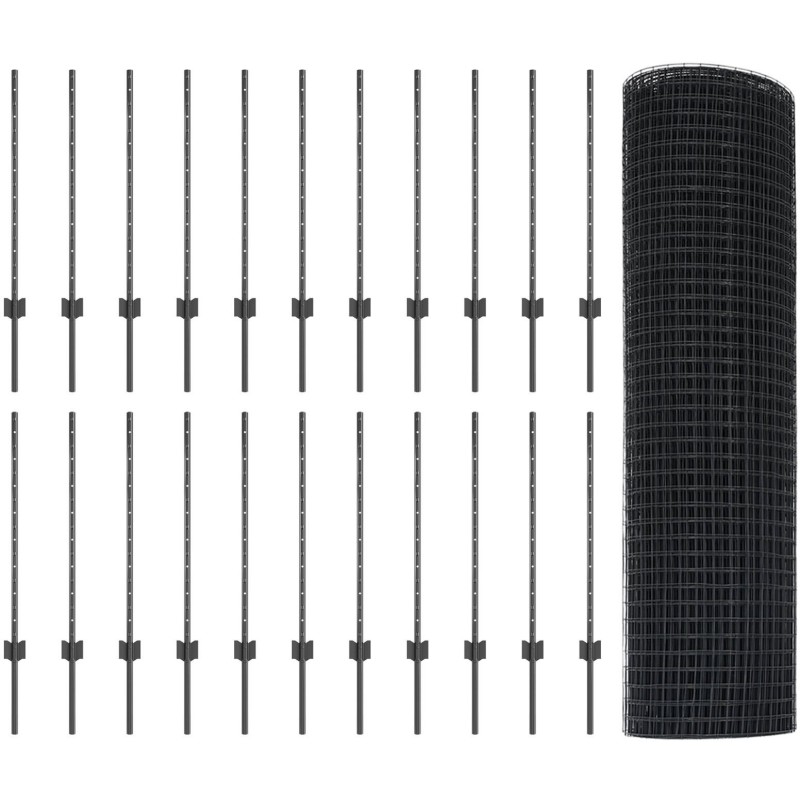 vidaXL Ogrodzenie spawane z 22 słupkami szarym 0,8x50 m stal