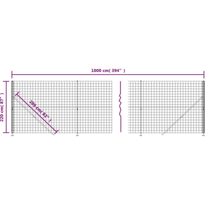 vidaXL Ogrodzenie z siatki, ze stopami słupków, zielone, 2,2x10 m