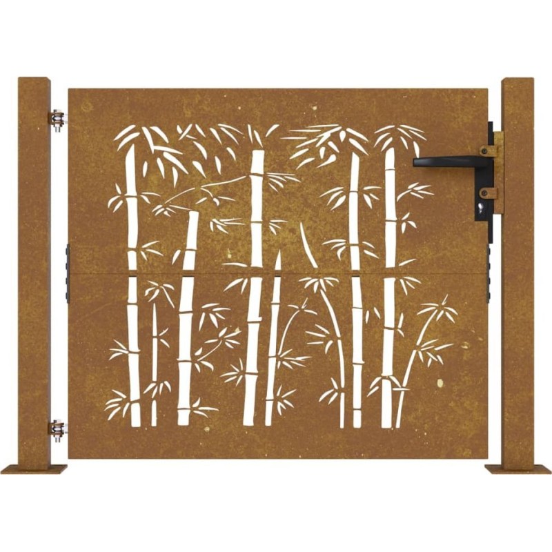 vidaXL vidaXL Furtka ogrodowa, 105x80 cm, stal kortenowska, motyw bambusa