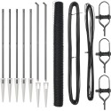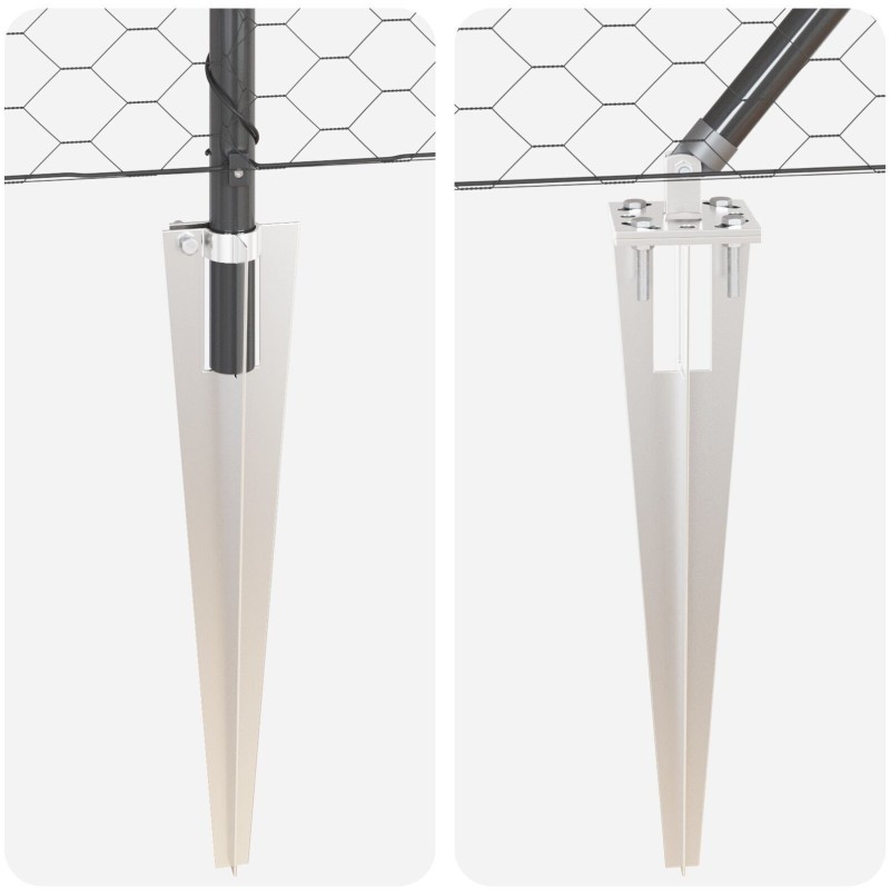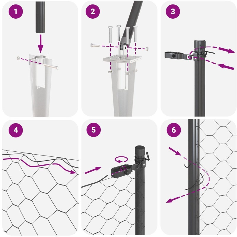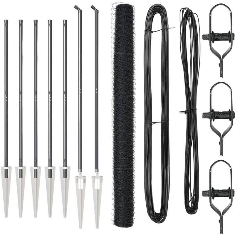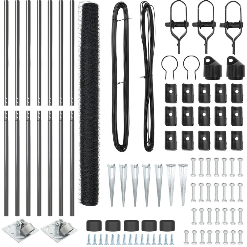 - Zawartość zestawu: Siatka ogrodzeniowa, słupki, kotwy gruntowe, uchwyty mocujące