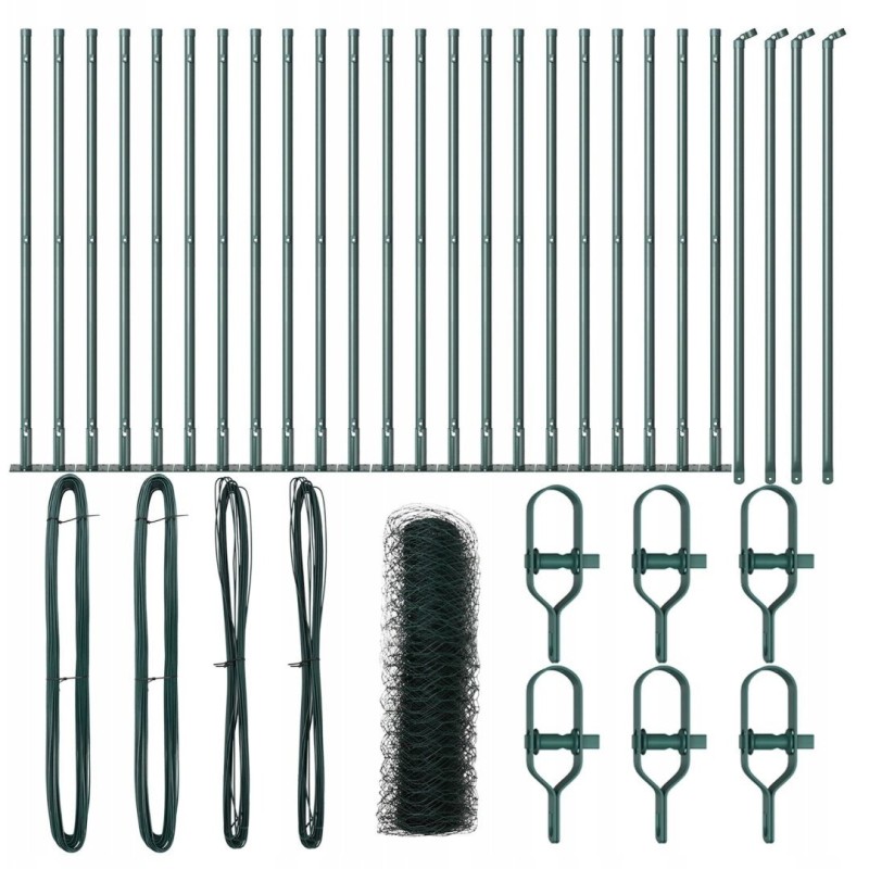 Ogrodzenie heksagonalne vidaXL Zielone 0.4x50 m Stal, Słupki ogrodzeniowe vidaXL z podstawami 13 szt. 32mm 50cm Stal ocynkowana
