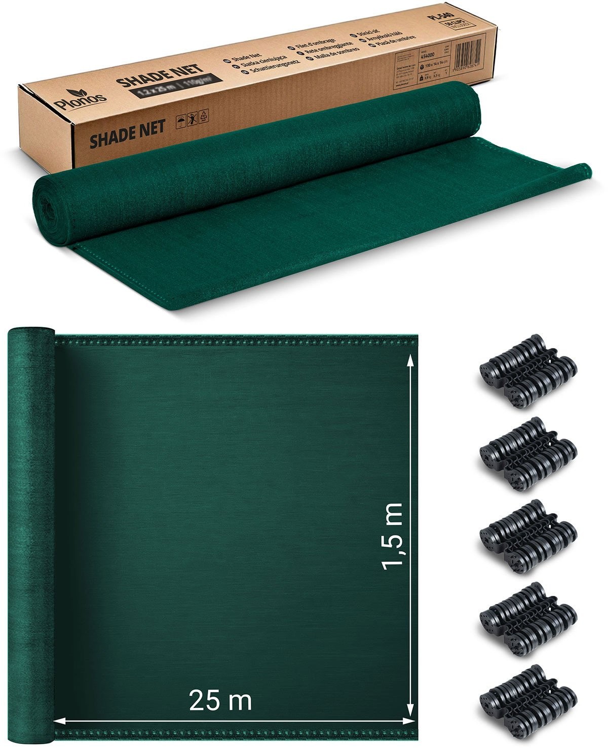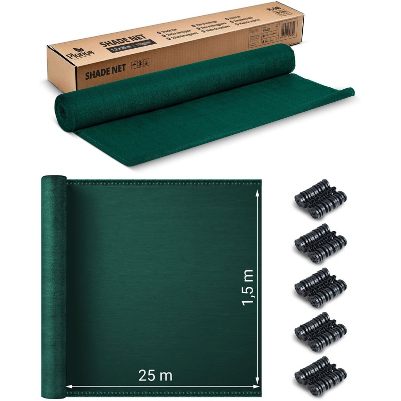 Siatka cieniująca 1,5x25m 110 g/m2 + 50 zacisków zielona