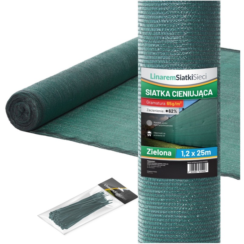SIATKA CIENIUJĄCA 62% MASKUJĄCA 1,2x25m OSŁONA NA PŁOT OGRODZENIE ZIELONA +UV