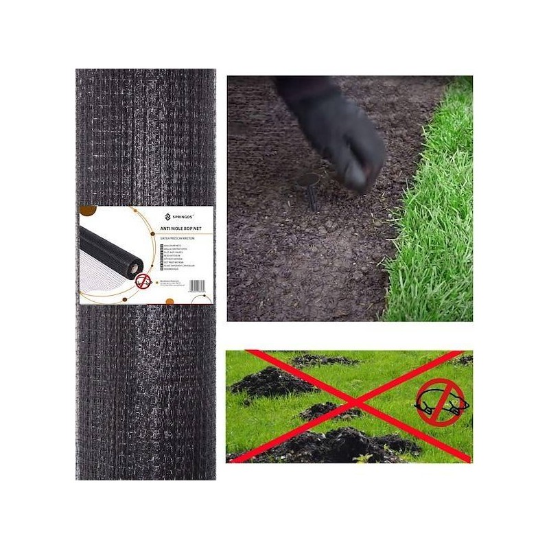 Siatka na krety marki Springos to skuteczny sposób na zabezpieczenie trawnika przed inwazją kretów, nornic, a także innych gryzoni atakujących trawniki i rośliny w naszych ogrodach. Siatka składa się z gęsto tkanych oczek wzmocnionych dodatkowym nadlewem materiału. Wyróżnia się wysoką wytrzymałością i odpornością na wilgoć oraz rozerwanie.