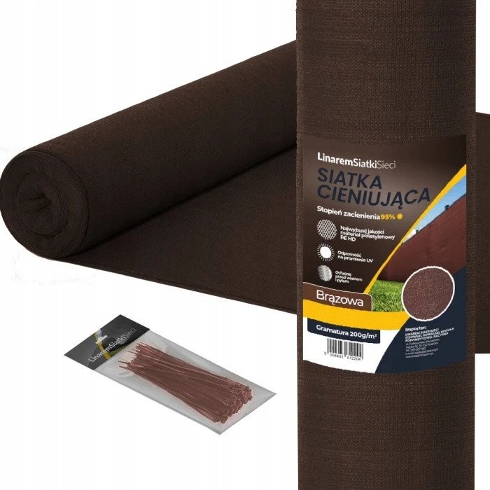 SIATKA CIENIUJĄCA 95% MATA 1,5x10m MASKUJĄCA NA OGRODZENIE PŁOT 200g +UV BRĄZOWA