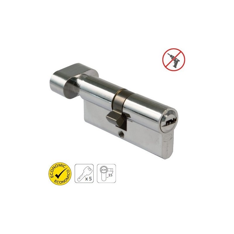 Lock cylinder with bolt, 40 x 40 mm, 5 keys, chrome-plated brass.