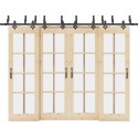 • Idealny do podwójnych drzwi do stodoły: gdy przestrzeń na ścianie jest ograniczona, zestaw uchwytów omijających drzwi do stodoły umożliwia niezależne przesuwanie dwóch drzwi na dwóch szynach bez konieczności zapewnienia dodatkowego miejsca.