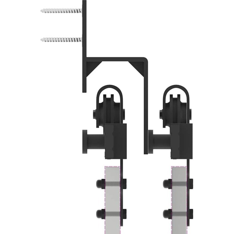 Dzięki temu zestawowi okuć do drzwi przesuwnych możesz łatwo zamontować podwójne szyny, aby drzwi przesuwały się jedne przed drugimi, a drugie za sobą.