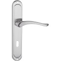 Model NICOLE wyróżnia się tradycyjnym szyldem oraz smukłą, lekko zakrzywioną rękojeścią, co zapewnia wygodę użytkowania. Klamka jest przeznaczona do drzwi wewnętrznych, co czyni ją idealnym rozwiązaniem dla biur, hoteli oraz mieszkań. Jej klasyczny wygląd sprawia, że doskonale współgra z różnorodnymi stylami aranżacyjnymi.