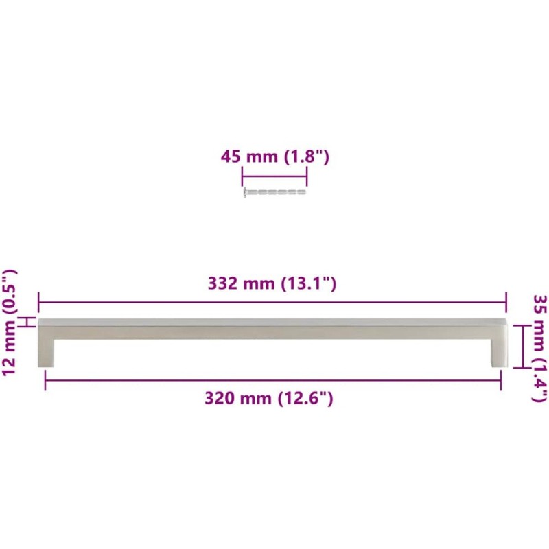 Uchwyty do szafek, 5 szt., srebrne, 320 mm, stal nierdzewna