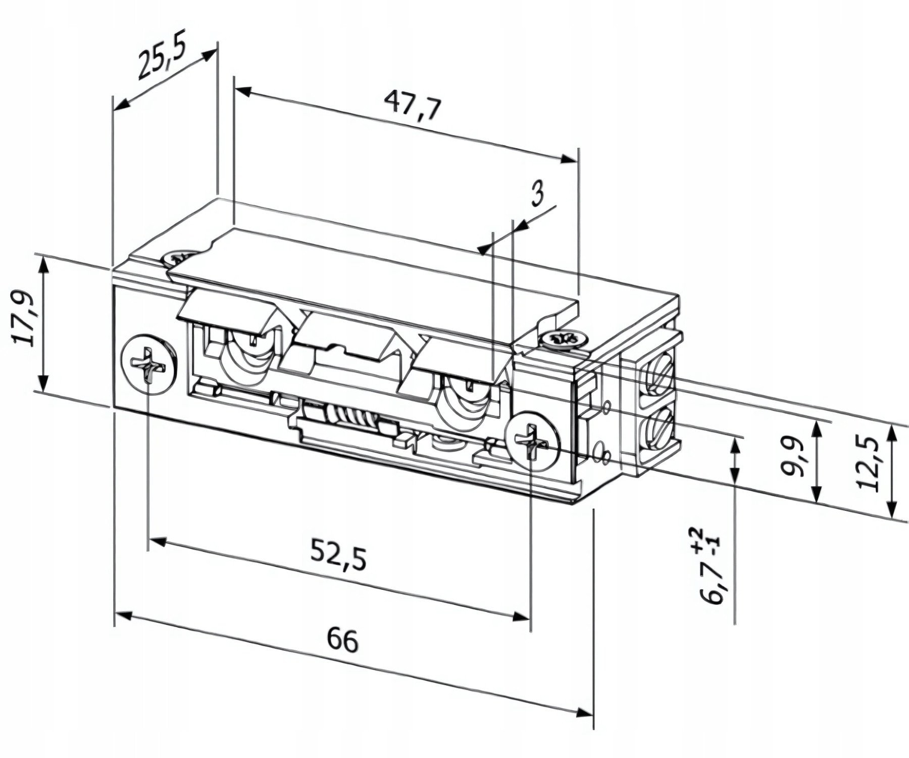 Wbudowany wyślizg w elektrozaczepie F24R-C zapewnia dodatkową ochronę zapadki, a regulacja luzu na poziomie 3 mm umożliwia precyzyjne dopasowanie do drzwi. Dzięki tym funkcjom, montaż staje się prostszy, a użytkowanie bardziej komfortowe.