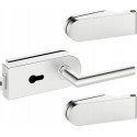 Zestaw okuć do drzwi szklanych, w minimalistycznym okrągłym kształcie, który doskonale wpasuje się we wszystkie rodzaje wnętrz. Zestaw przeznaczony jest do drzwi szklanych o grubości 8 mm, wysokości 2 m oraz szerokości do 80 cm. Produkty zostały wykonane z najwyższej jakości materiałów - zamek oraz rękojeść są wykonane ze stali nierdzewnej, natomiast zawiasy są wykonane z aluminium.