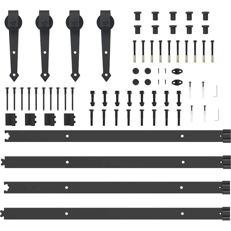 - Zawartość zestawu: 4 x szyny, 4 x blokady drzwi, 4 x rolki, 10 x zaciski mocujące, 2 x prowadnice podłogowe, 1 x łącznik szyny, inne niezbędne akcesoria