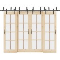 - Idealny do podwójnych drzwi do stodoły: gdy przestrzeń na ścianie jest ograniczona, zestaw uchwytów omijających drzwi do stodoły umożliwia niezależne przesuwanie dwóch drzwi na dwóch szynach bez konieczności zapewnienia dodatkowego miejsca.