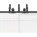 • Idealny do podwójnych drzwi do stodoły: gdy przestrzeń na ścianie jest ograniczona, zestaw uchwytów omijających drzwi do stodoły umożliwia niezależne przesuwanie dwóch drzwi na dwóch szynach bez konieczności zapewnienia dodatkowego miejsca.